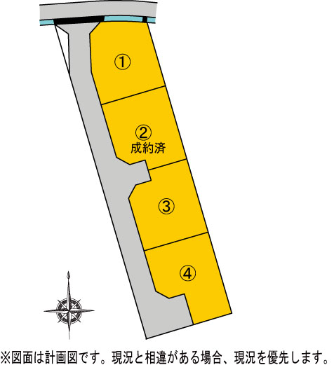 分譲地内に道路も入れて、50坪程度の綺麗な区割りとなっております。