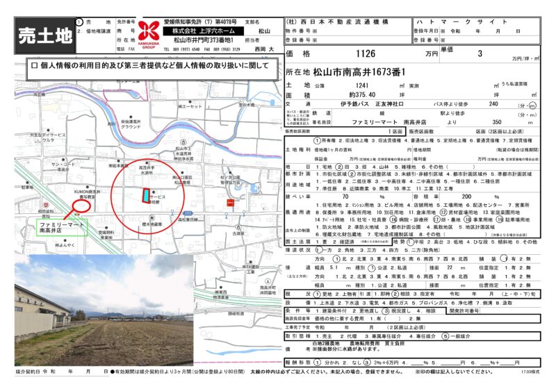 松山市南高井約375坪の土地です。